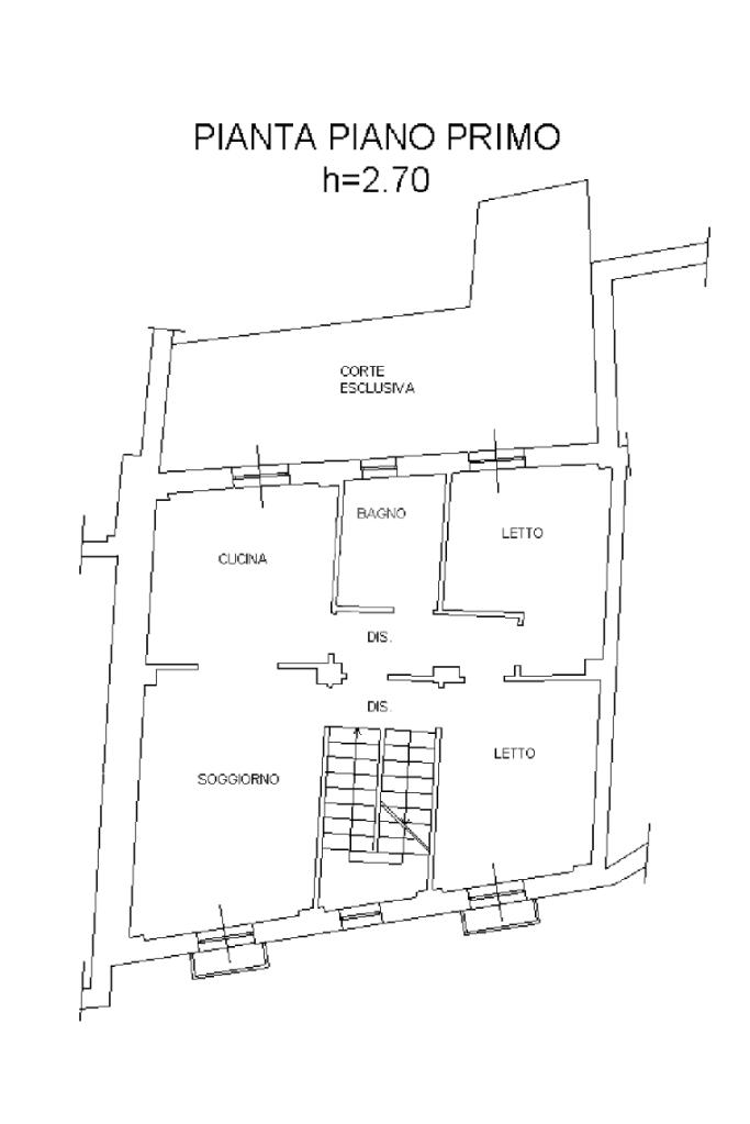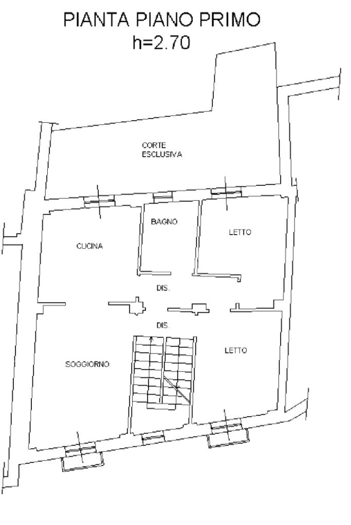 L'appartamento posto al primo piano è composto da: soggiorno open space , cucina ,2 camere da letto, bagno, due balconi e CORTE ESTERNA PRIVATA.