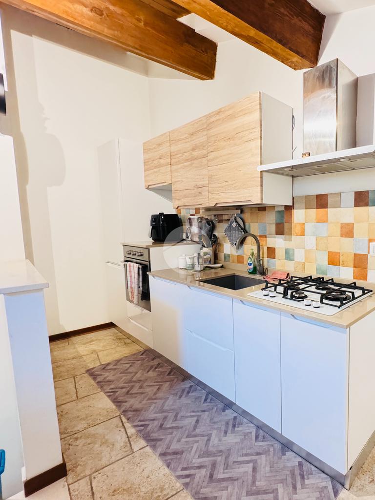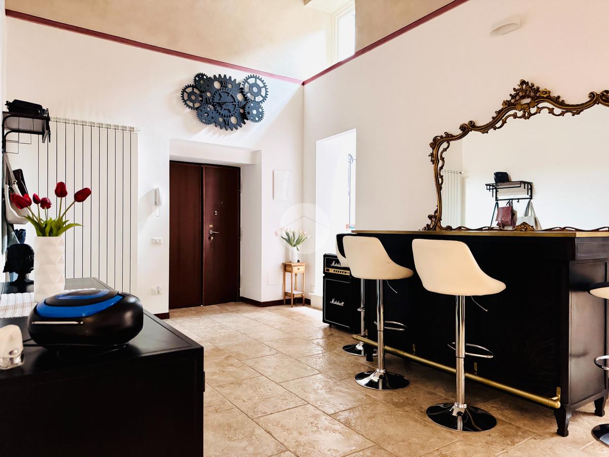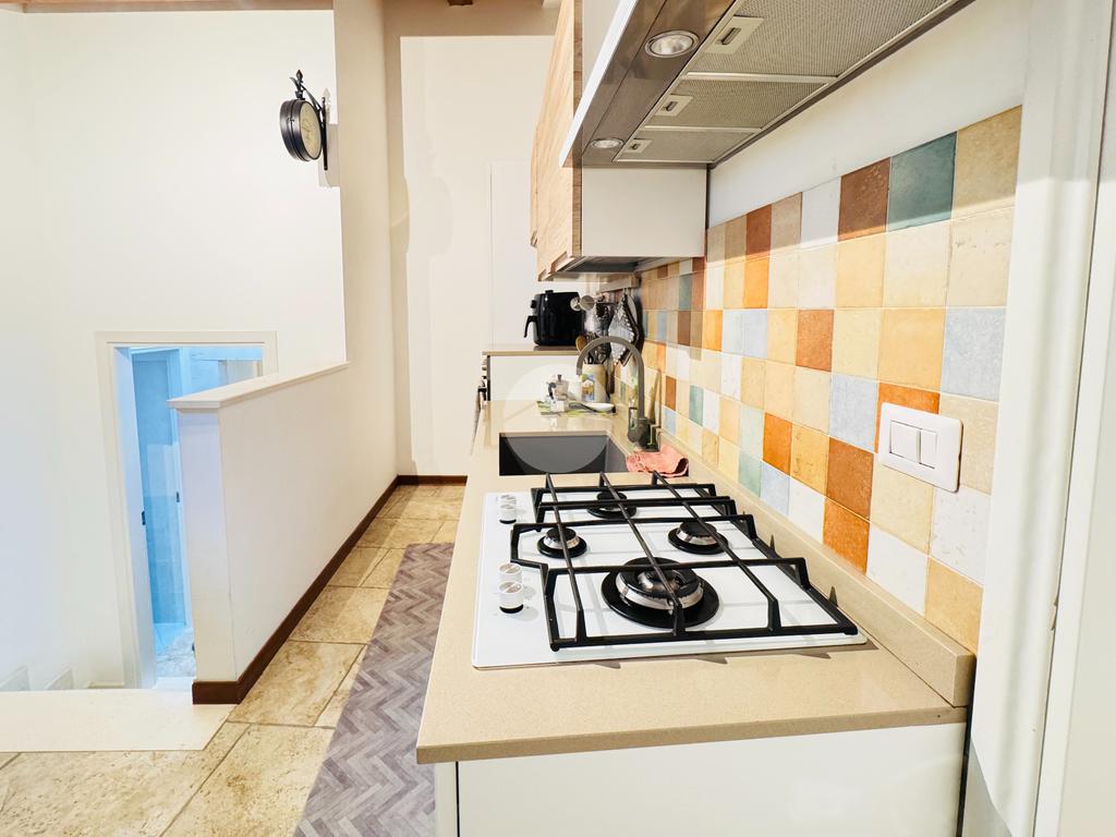 Questa residenza offre un perfetto connubio tra storia e modernità. Gli interni, caratterizzati da affreschi originali, si sviluppano in cinque locali, tra cui un'ampia camere da letto e un bagno. La luminosità naturale pervade ogni ambiente, esaltando le rifiniture di pregio che arricchiscono l'appartamento.