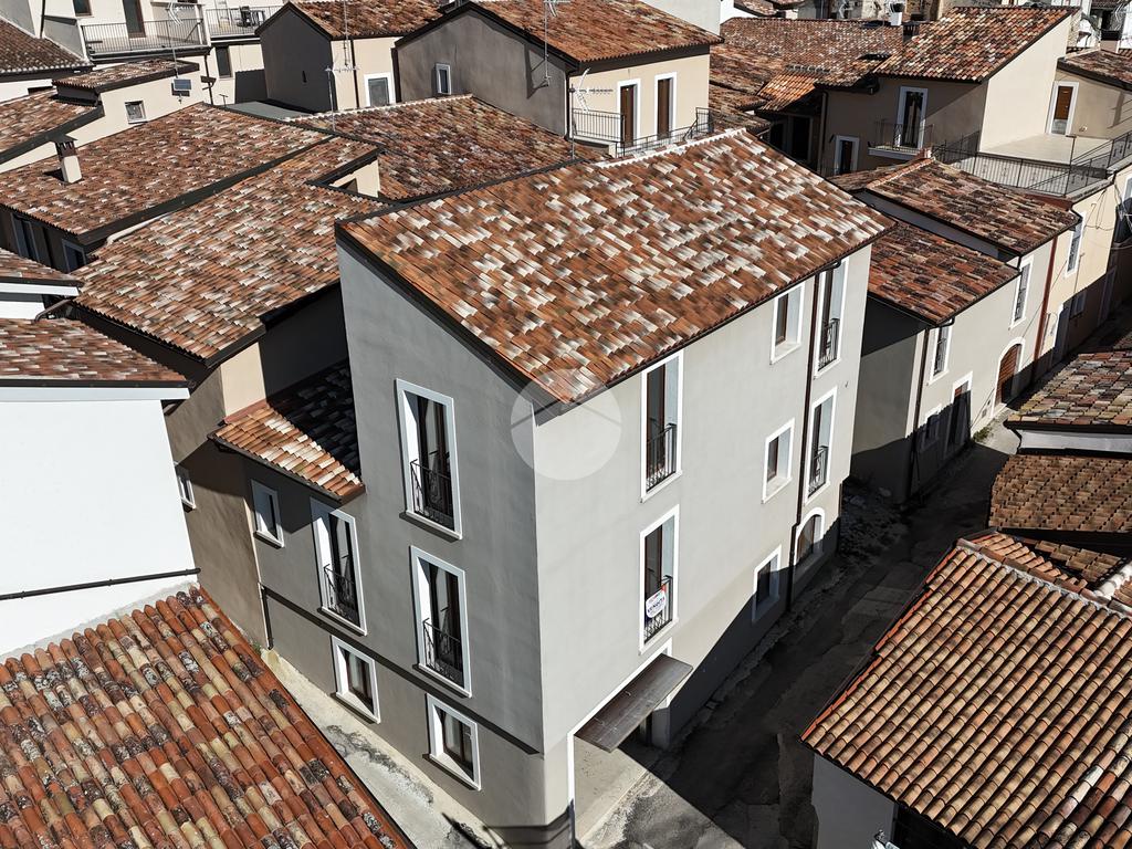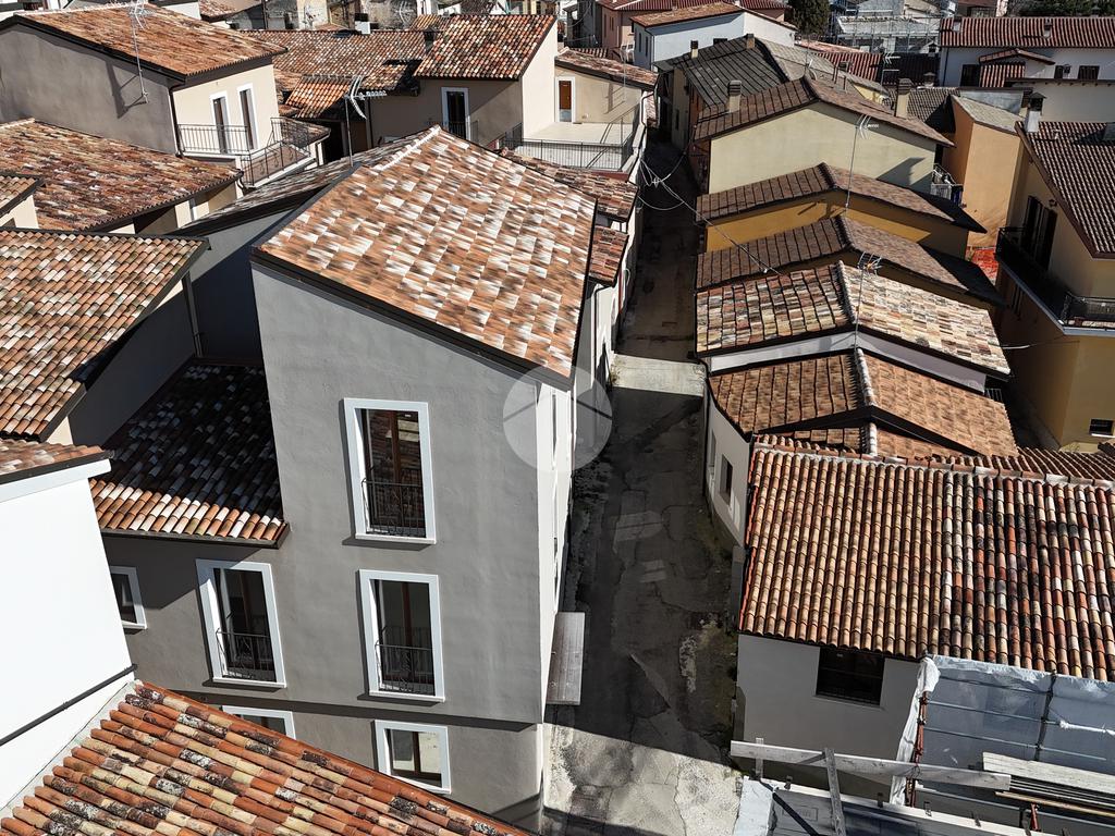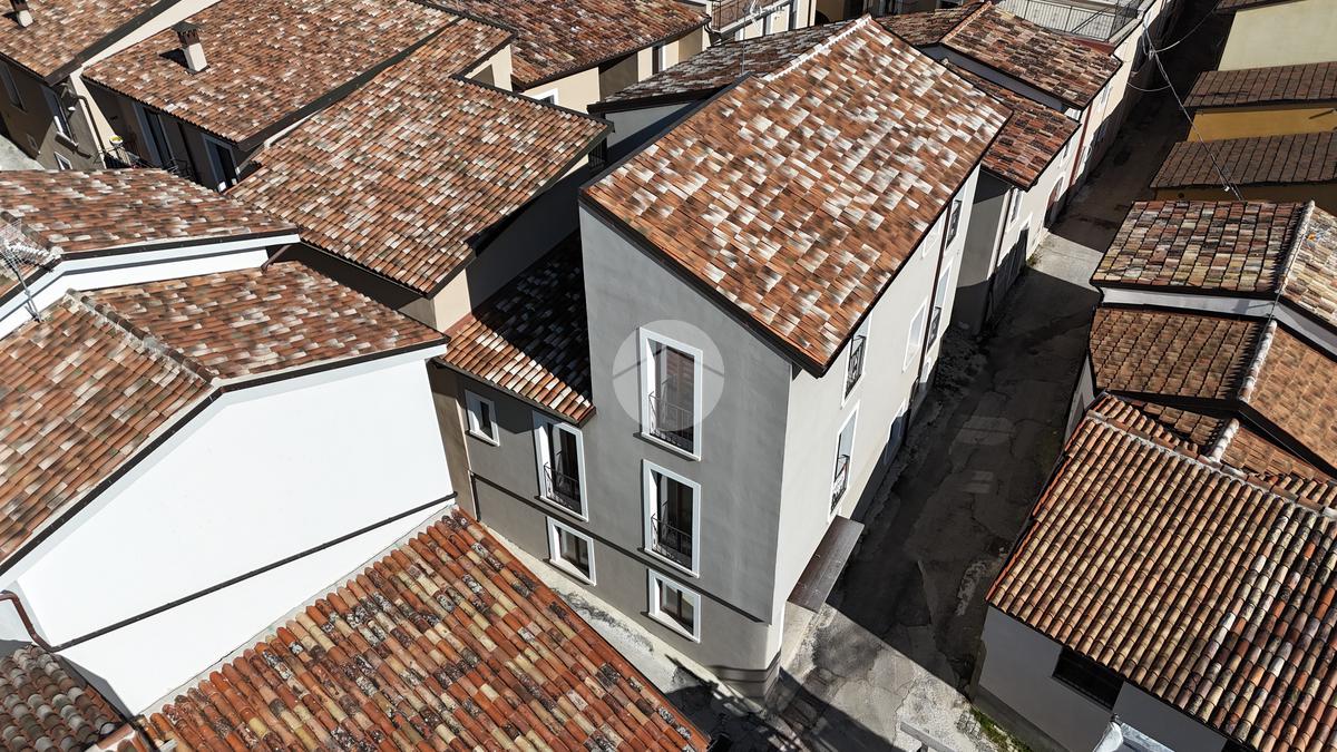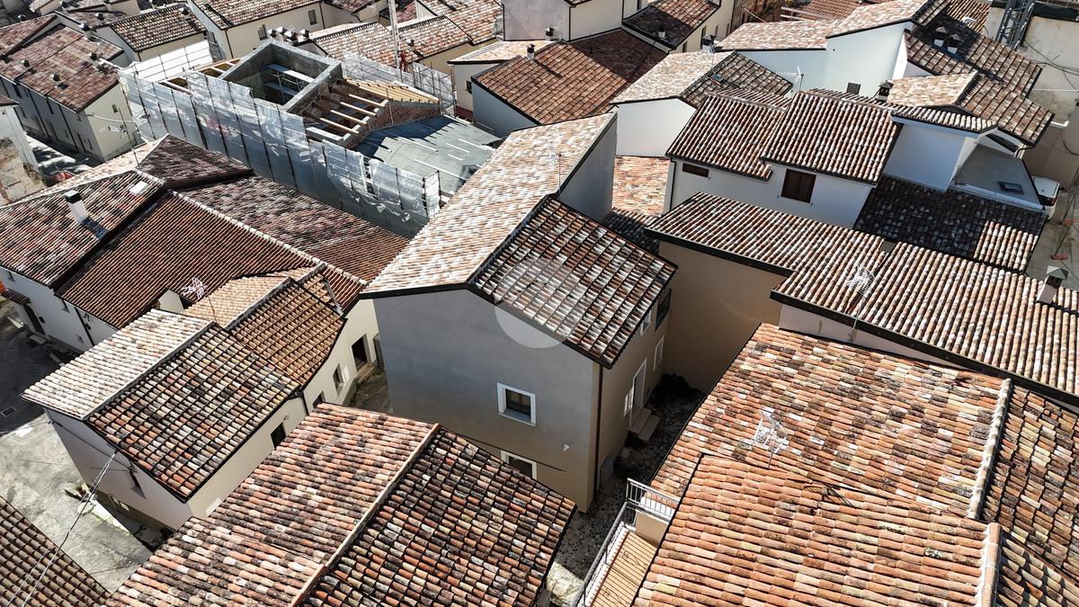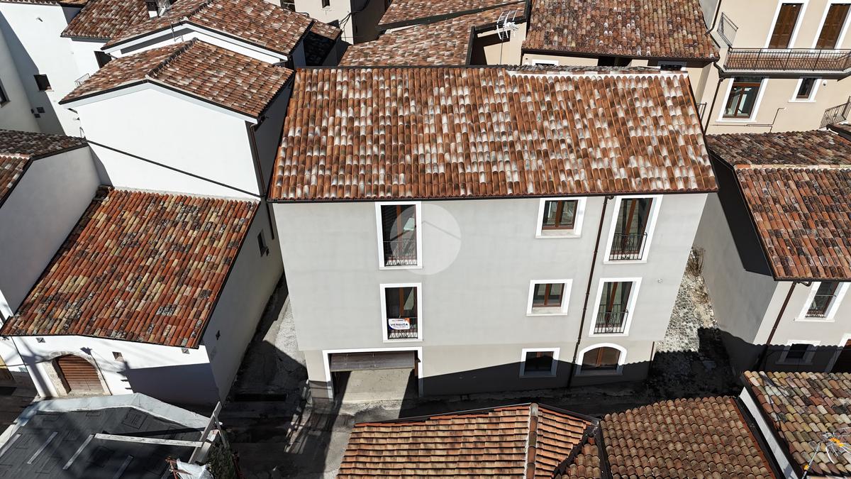 L'immobile, completamente abbattuto e ricostruito dopo il sisma, offre una superficie complessiva di 300 mq, garantendo ampi spazi per ogni esigenza abitativa.