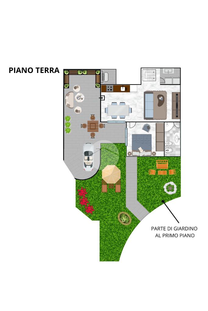 All'interno, l'abitazione presenta un doppio salone che garantisce un'ampia zona giorno, tre camere da letto ben distribuite e tre bagni, offrendo comfort e funzionalità.